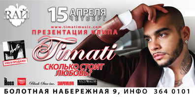 Париж и Любовь два синонима истинного удовольствия! Город любви и сладких грез, мягкий шелк простыней и самая незабываемая ночь с прекрасной незнакомкой. И только искушенные в таинствах любви знают ответ на вопрос "Сколько Стоит Любовь?". Только 15 апреля Тимати и клуб RАЙ приглашают искушенных романтиков окунуться в оазис любви в самом центре Москвы