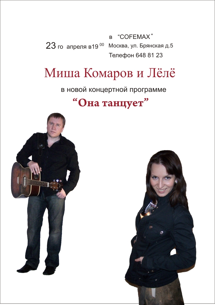 В этом сезоне единственный концерт Миши Комарова и Лёлё состоится 23-го апреля в 19-00