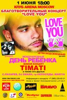 В Международный день Ребенка один из самых популярных и востребованных реперов страны соберет огромное количество юных зрителей и почитателей его творчества, чтобы поздравить всех российских детей вместе со своими друзьями: Сергеем Лазаревым, DJ Smash, группой «Непоседы» и певицей Mariya. Все желающие смогут увидеть грандиозное выступление которое объединит всех неравнодушных к судьбе будущего поколения России, смогут посетить его абсолютно бесплатно. Открывать концерт «LOVE YOU» будет младший состав группы «Непоседы» песней «Куда уходит детство». Красивой кодой мероприятия станет исполнение совместного произведения «LOVE YOU» российского хип-хоп исполнителя и всех собравшихся гостей, которое уже показало мировому сообществу, что это - не просто песня, это - призыв обратить внимание на детей и их будущее. Данная композиция была поддержана Федеральным Агентством по делам молодежи РФ и стала хорошей музыкальной точкой в подведении итогов «Года Молодежи» в России. Большое количество celebrity, поддержав идею Тимати, посетят выступление вместе со своими детьми.