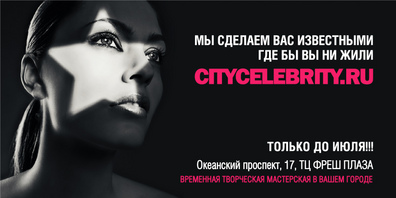 CITYCELEBRITY - это проект, который ставит перед собой задачу поиска активных творческих людей в регионах России, демонстрацию их возможностей, продвижение новых идей и начинаний, объединение усилий творческих групп из разных концов страны, создание новых интересных проектов.