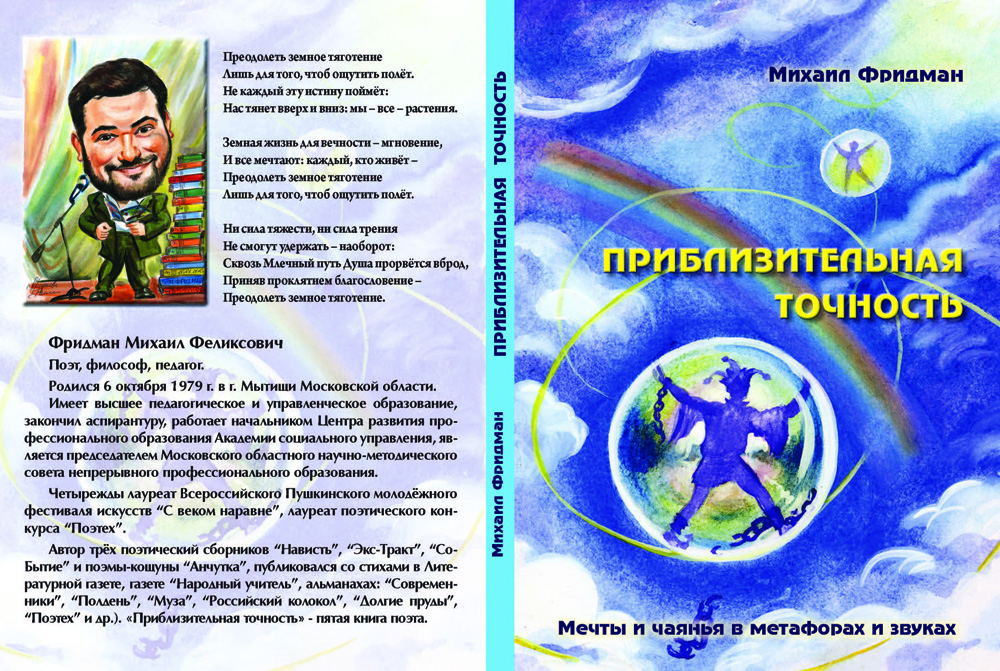 Член литературного объединения имени Дм. Кедрина Михаил Фридман в пятый раз радует ценителей поэтического мастерства значимыми подарками в области изящной словесности. По словам самого поэта в книге представлены «мечты и чаянья в метафорах и звуках», и в этом не приходиться сомневаться. «Поэты отличаются печалью – Томленьем отцветающей души…». Контекстуально этот концепт доминирует во всём содержании представленных стихотворений. «Объятья – вот границы ойкумены!». С ними мы и предлагаем познакомиться утончённым читателям.