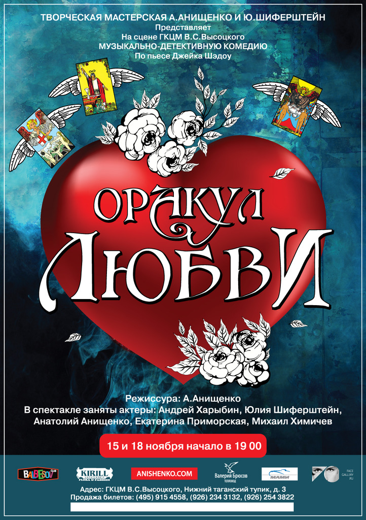 Впервые на Российской сцене комедийный детектив Джейка Шэдоу «ОРАКУЛ ЛЮБВИ». В течении 2-х часов вы окунетесь в атмосферу мистического детектива, смешных и нелепых жизненных ситуаций, которые происходят с героями пьесы.