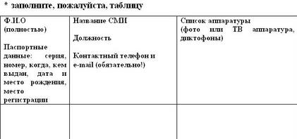 Уважаемые журналисты, обратите, пожалуйста, внимание на правила аккредитации!