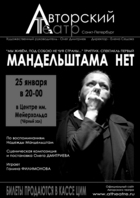 В спектакле "Мандельштама нет" Авторский театр на основе документальной истории травли и уничтожения великого поэта Осипа Мандельштама исследует тему государственного террора, его механизмов и средств, главные из которых: подмена нравственных ценностей идеологическими догмами, лишение человека свободы мысли и совести, разрушение личности путём моральных и физических пыток, уничтожение духовной жизни, как таковой, с целью формирования человеческого общества, как абсолютно послушной государству "народной массы", пригодной к расходованию в любых целях и любых количествах по произволу государства.