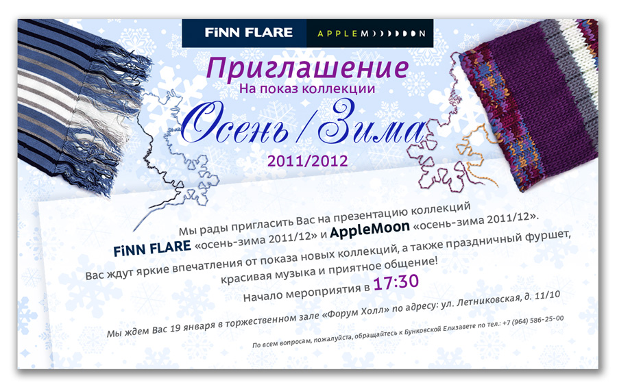 Компания Finn Flare приглашает Вас на показ новой коллекции Осень-Зима 2011-2012. Вас ждет приятное общение, живая музыка, красивое модное дефиле, а также праздничный банкет.