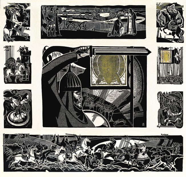Более 200 работ составили уникальную и интереснейшую экспозицию. Камертоном экспозиции стала станковая линогравюра «Дмитрий Донской» из знаменитой авторской исторической серии и пейзажные акварели А.Д.Шмаринова из цикла «Россия-любовь моя».