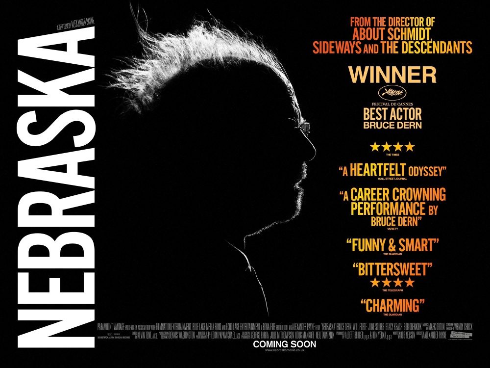 «Небраска»— американский трагикомедийный чёрно-белый фильм 2013 года режиссёра Александра Пэйна. Брюс Дерн за свою актёрскую работу удостоился многочисленных наград, в числе которых приз за лучшую мужскую роль на 66-м Каннском кинофестивале, премия Национального совета кинокритиков США и номинации на «Оскар», «Золотой глобус» и BAFTA.