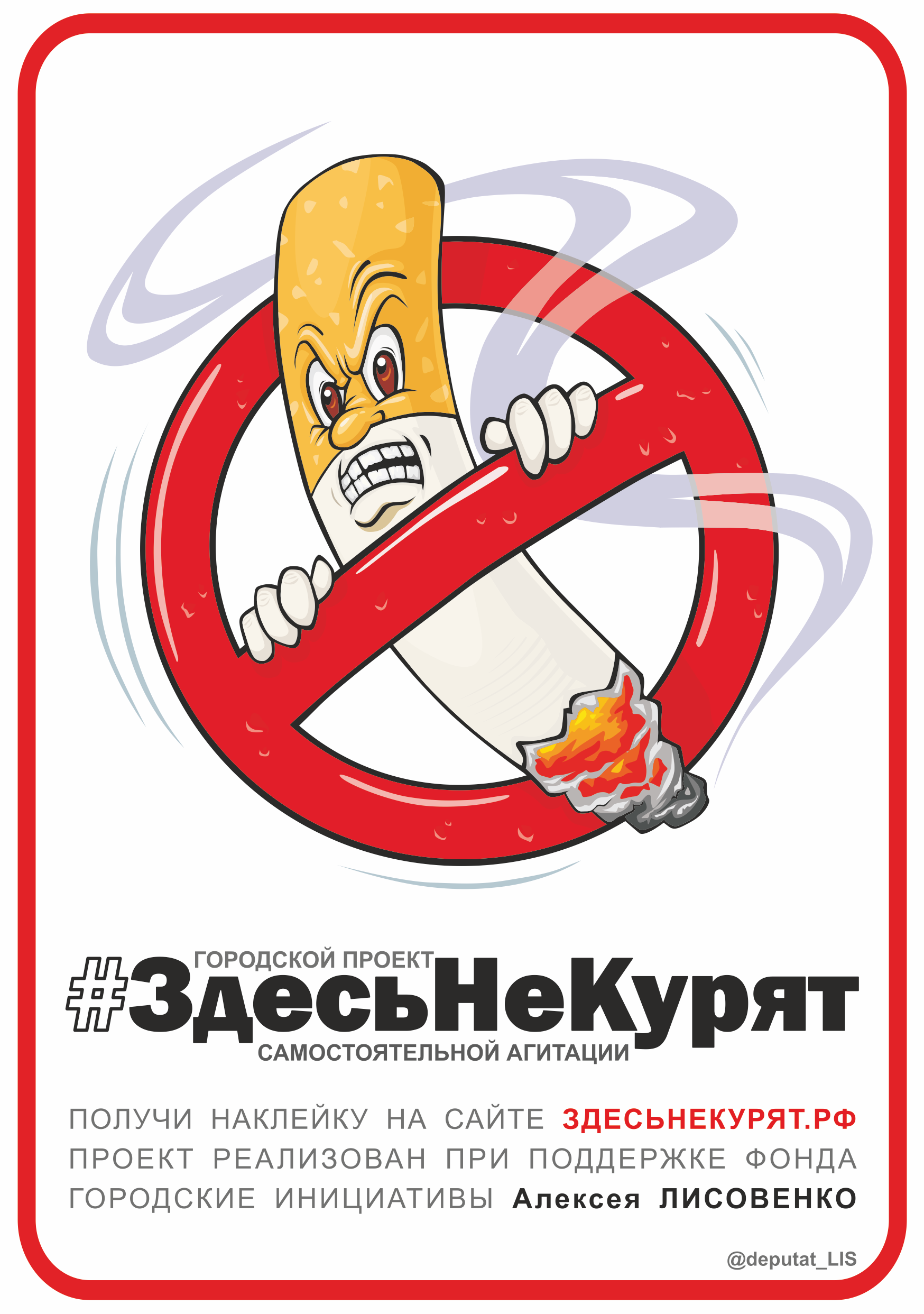 Наклейки представляют собой не просто незатейливый агитационный материал, а, как минимум, могут вызвать улыбку читающего, и напоминают, что от сигаретного смога должны быть свободны все те места не предназначенные для «задымления» - это подъезды, офисы, школьные, детские и спортивные площадки, культурные и развлекательные учреждения.