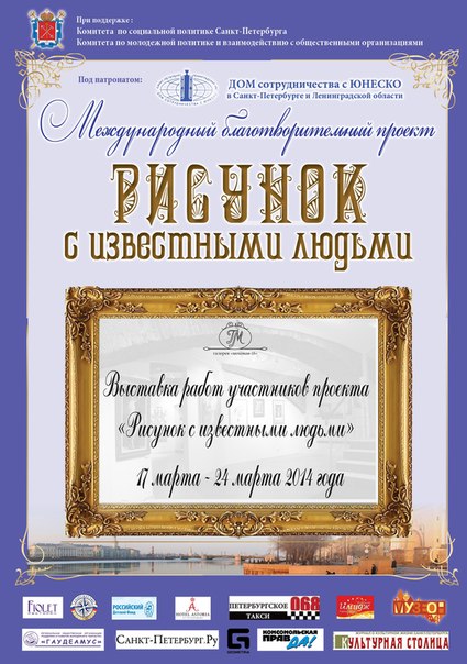 анонс.doc Скачать файлБлаготворительный проект «Рисунок с известными людьми» проходит при поддержке Комитета по социальной политике Санкт-Петербурга и Комитета по молодежной политике и взаимодействию с общественными организациями.