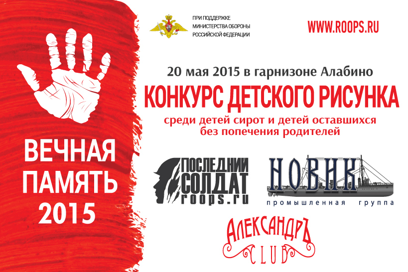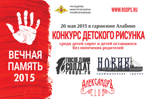 Региональная Общественная Организация «Последний Солдат», при поддержке Министерства обороны РФ, ОАО ПГ «НОВИК» в четвертый раз проводит Всероссийский ежегодный благотворительный конкурс детского рисунка «Вечная Память - 2015» среди детей-сирот и детей, оставшихся без попечения родителей.