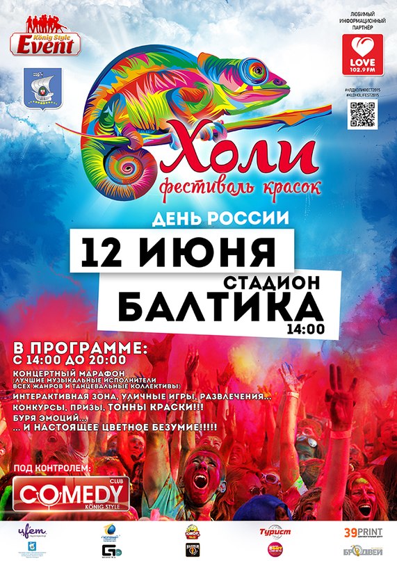 Участники мероприятия обсыпают друг друга разноцветными порошками. На фестивале получаются самые яркие и смешные фотографии. Затем краски можно легко смыть водой.
