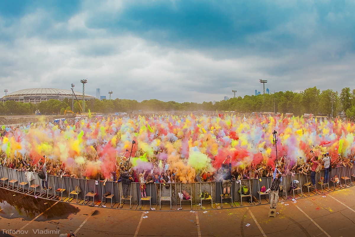 В 2014 году Фестиваль красок Холи в Москве состоялся 7 июня на территории спортивного комплекса «Лужники». Согласно официальной статистике через Фестиваль красок Холи от Флешмоб МСК прошло более 85 тысяч человек! Московский фестиваль стал самым массовым в России, побив все рекорды. Но 2015 год показал, что это не предел. 23 мая на площади Южного спортивного ядра спорткомплекса «Лужники» Фестиваль красок Холи встретили 137 тысяч человек. www.rusholi.ru http://vk.com/rusholi