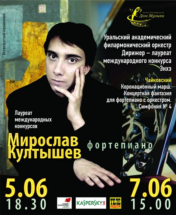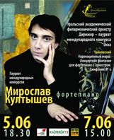 Мирослав Култышев (29 лет). Родился в Ленинграде. Выпускник Петербургской консерватории (класс профессора Александра Сандлера). Победитель XIII Международного конкурса им. Чайковского (Москва, 2007), Международного конкурса пианистов Монте-Карло (Монако, 2012). В 2005 году за выдающийся вклад в музыкальное искусство награжден немецким орденом Грифона.