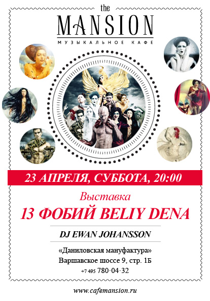 23 апреля в ресторане The Mansion состоится фотовыставка «13 фобий». Автор выставки — талантливый молодой фотохудожник Beliy Den — представит публике свои работы, иллюстрирующие собственные страхи.