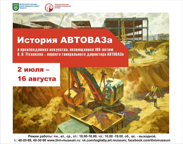 В Тольяттинском художественном музее со 2 июля по 16 августа 2015 года пройдет выставка из фондов музея, посвященная этому знаменательному событию - «История АВТОВАЗа в произведениях искусства».