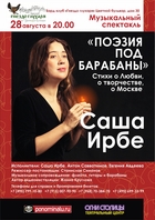 Саша Ирбе - Член Союза писателей России, один из самых популярных поэтов среди современной московской интеллигенции, человек с мощным поэтическим голосом и судьбой, Женщина, наделенная не только возможностью "не по женски" писать, но и магической, манерой чтения стиха, услышав которую однажды уже невозможно ее ни с кем спутать и невозможно забыть.