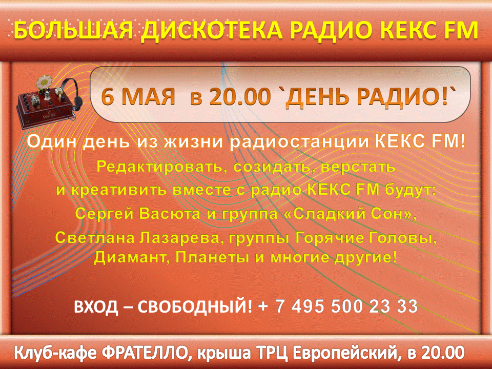 День Радио! 6 мая КЕКС FM приглашает на реалити-шоу в клуб-кафе ФРАТЕЛЛО