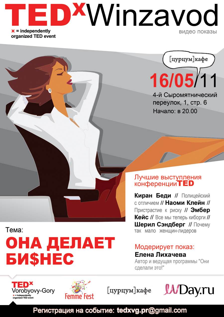 16 мая 2011 в [цурцум]кафе пройдет первый показ TEDxWINZAVOD "ОНА ДЕЛАЕТ БИЗНЕС!".