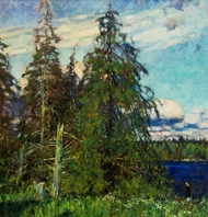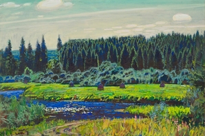 Абакумов обладал особым даром точно передавать переходные состояния природы: рассвет и закаты, сумерки, первый и последний лучи солнца, туман, который вот-вот рассеется, или дождик, который через мгновение начнется, мимолетную радугу или едва уловимую тень. Здесь ему не было равных. Такое уважительное или, пожалуй, даже благоговейное отношение к природе не случайно. Михаил Георгиевич вырос и воспитывался в семье староверов. «В доме висели иконы, я каждый день слушал Священное Писание, которое читала бабушка, - вспоминает художник. - Именно она открыла мне, что наш мир создан Творцом и достоин восхищения».