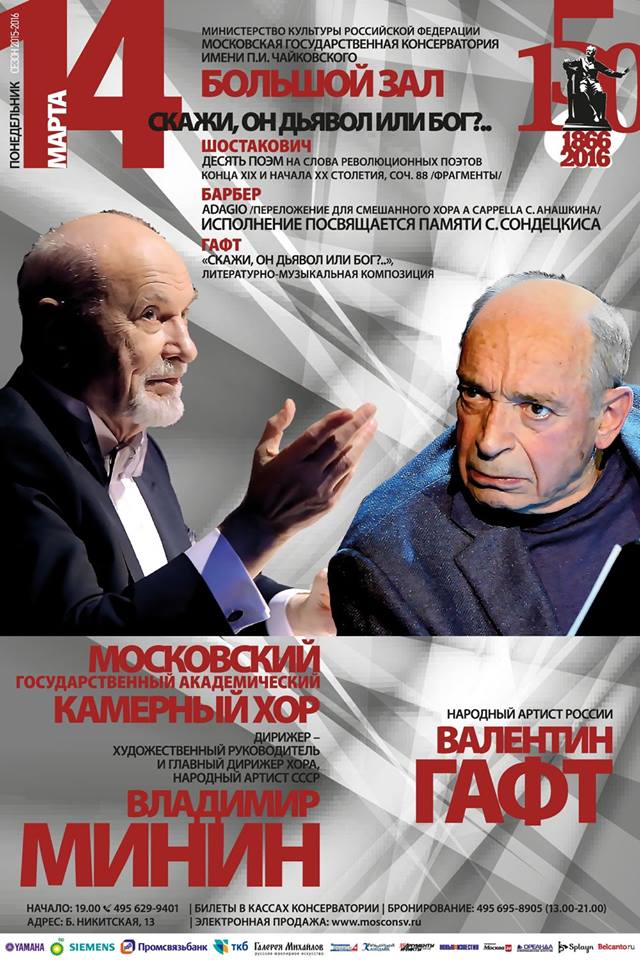 Особенно значимая дата для В. Минина и Московского камерного хора - 110-летие со дня рождения Дмитрия Шостаковича, которое будет отмечаться в сентябре этого года. Этому событию будет посвящено первое отделение концерта. С именем композитора связана ещё одна круглая дата - 80 лет назад, 28 января 1936 года, в газете "Правда" появилась статья "Сумбур вместо музыки!", в которой его опера "Леди Макбет Мценского уезда" подвергалась резкой критике за "антинародный", "формалистический" характер. Так началась долгая история культурного противостояния Шостаковича и Сталина.