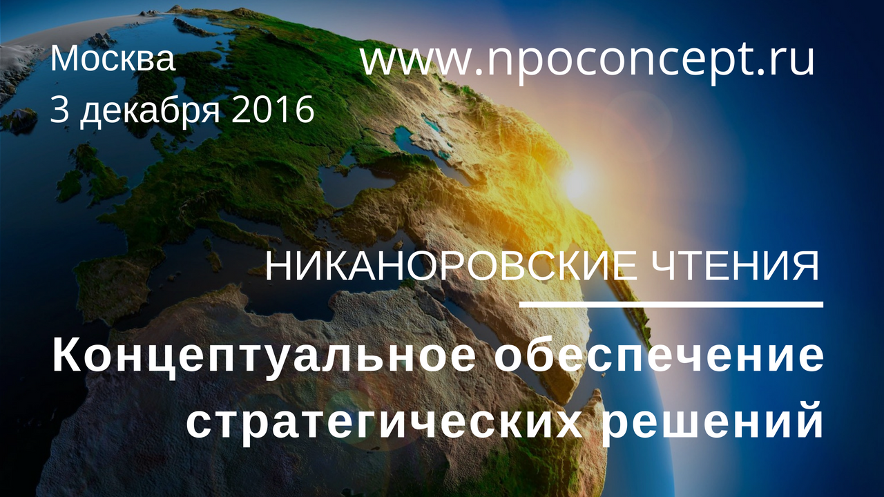 Никаноровские чтения 2016.pdf Скачать файл3 декабря 2016 г в Москве состоится научно-практическая конференция КОНЦЕПТУАЛЬНОЕ ОБЕСПЕЧЕНИЕ СТРАТЕГИЧЕСКИХ РЕШЕНИЙ (Никаноровские чтения).