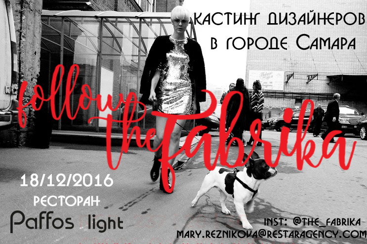 Кастинг состоится 18 декабря на территории ресторана «Paffos light» (www.paffoslight.ru). Количество мест ограничено: возможность предоставится всего 5-ти дизайнерам. Событие на FB: www.facebook.com/thefabrikamoscow