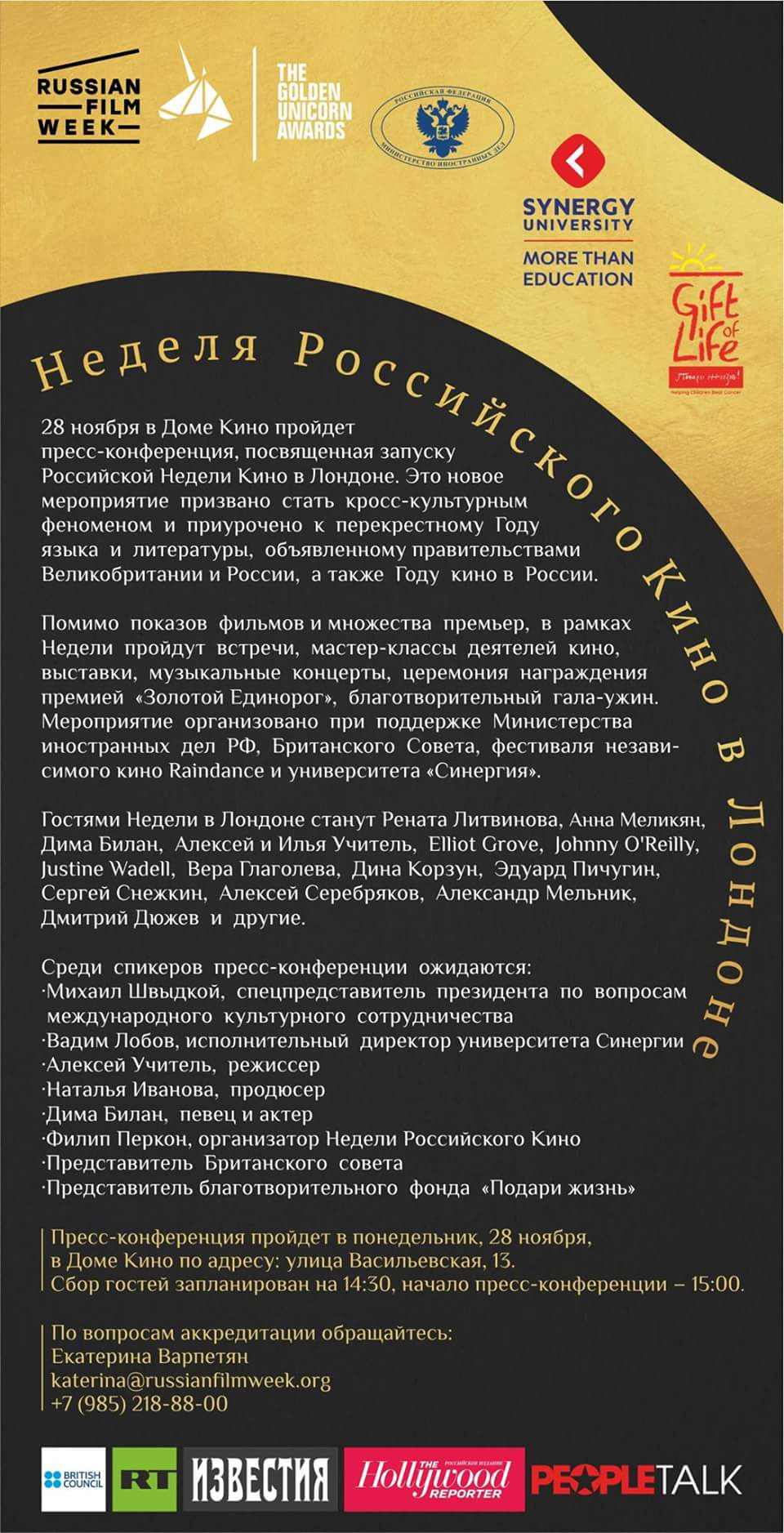 Пресс-конференция, посвященная запуску Российской Недели Кино в Лондоне