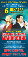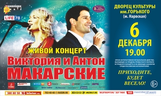 ПРЕСС-РЕЛИЗ _ Виктория и Антон МАКАРСКИЕ.doc Скачать файл6 декабря 2016 года в Санкт-Петербурге, в рамках концертного тура по России, состоится «Живой концерт. Виктория и Антон Макарские» - долгожданное для Санкт-Петербурга событие, ведь на протяжении пяти лет дуэт находился в напряженном гастрольном графике, Антон отдавал много времени съемкам, а Виктория растила двоих детей.