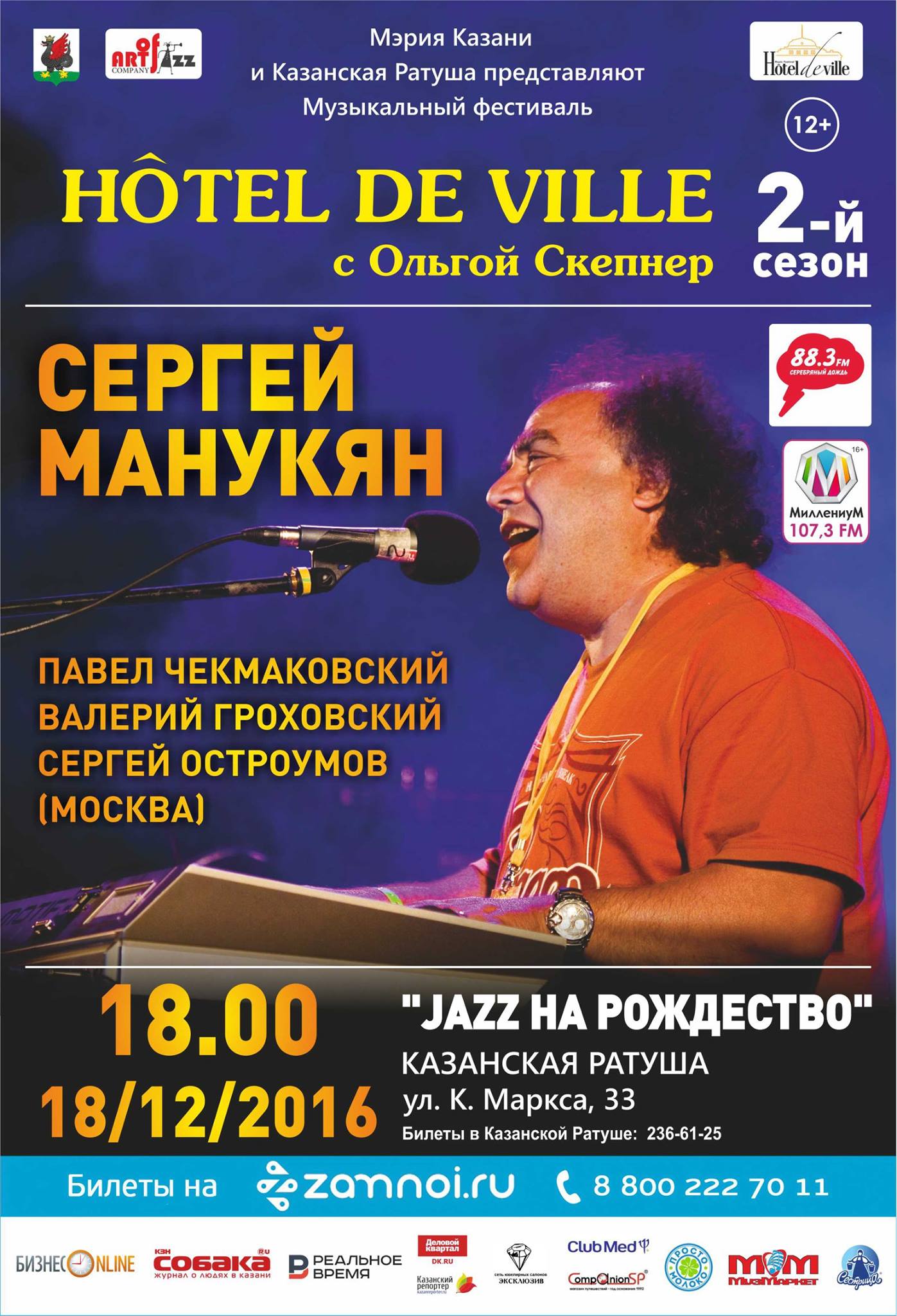 В Казани с великолепным составом звездных музыкантов (Павел Чекмаковский, Валерий Гроховский и Сергей Остроумов) он представит специальную программу «Jazz на Рождество».