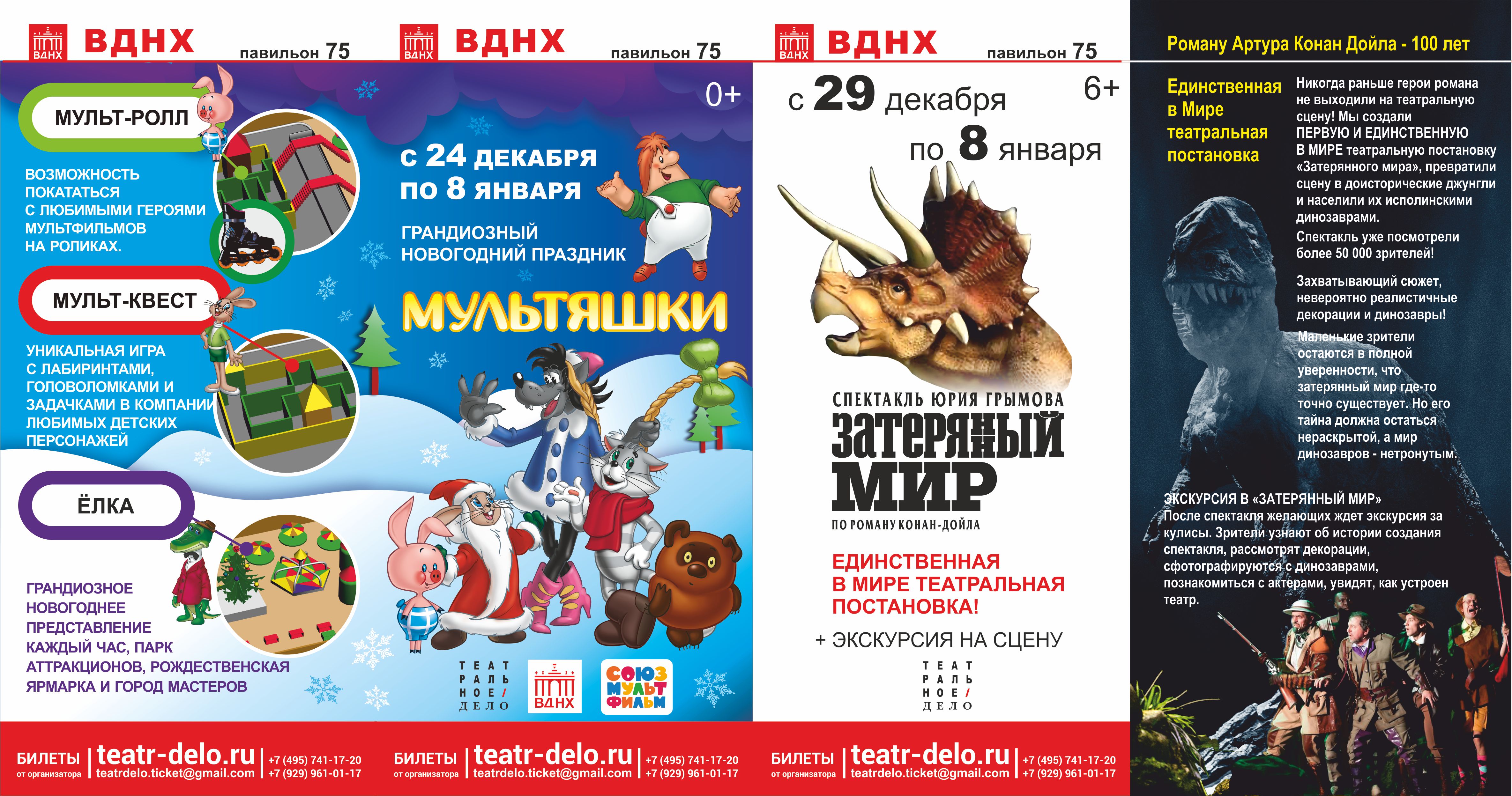 А уже с 29 декабря с.г. по 8 января 2017 года в Павильоне №75 впервые в мире российские зрители всех возрастов увидят спектакль Юрия Грымова по знаменитому роману Артура Конан-Дойла «Затерянный мир».