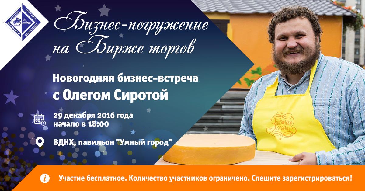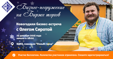 Биржа торгов приглашает на встречу с сыроваром Олегом Сиротой 29 декабря 2016 года.