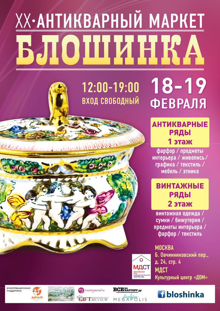 Антикварные выходные с «Блошинкой». XX Антикварный маркет «Блошинка» пройдет 18-19 февраля 2017г в центре столицы