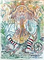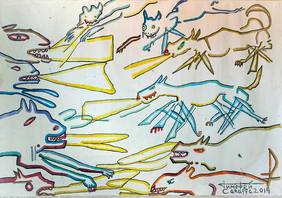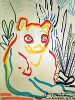 Проект "Жители Леса" создавался на протяжении нескольких лет в Москве и на о. Бали (Индонезия). В проект входят крупномасштабные холсты, масло (2 х 3 м), изображающие различных представителей флоры и фауны планеты, иногда в сильном увеличении, при этом использованная техника - ARTLESS, берущая свои истоки как в наскальных рисунках каменного века с одной стороны, так и в детских рисунках фломастером, с другой стороны, что в свою очередь приводит к подчеркиванию "несоответственности" формата к привычному контексту социальнобытовых условий жизни, превращая при этом "детский" дискурс в сакральный поиск первичных архетипов и самоидентификации первых людей каменного века на заре человеческой цивилизации. И второй частью проекта являются авторские видео снятые преимущественно в удаленных деревнях о. Бали, на которых показана жизнь балийцев среди джунглей, практически без цивилизации, в гармонии с природой, при этом у всех есть телевидение и интернет... видео показываются на небольших экранах (возможно ноутбуках), чтобы с одной стороны сохранить ощущение "полевой" съемки, с другой показать то ощущение от масштабов природы и гармоничного в ней места человека, которое возникает у "зрителя-туриста" при взгляде на тот девственный мир. У "жителей леса" на сам Лес как таковой. Проект призван обратить внимание на серьезнейшие проблемы возникшие в экологии Духа современного цивилизованного человека, попавшего в кризис понятий и смыслов спровоцированный культурой и философией постмодернизма и показывает пути выхода из оного кризиса через современное искусство, как занимающегося самоидентификацией и установлением - возвращением архетипических смыслов.