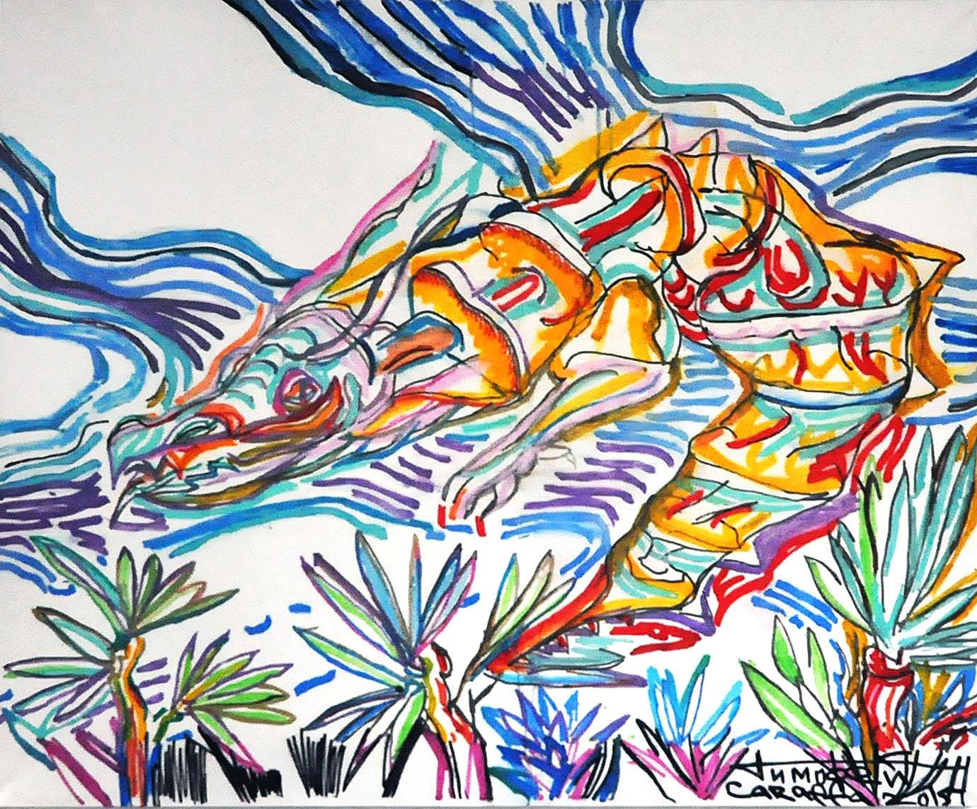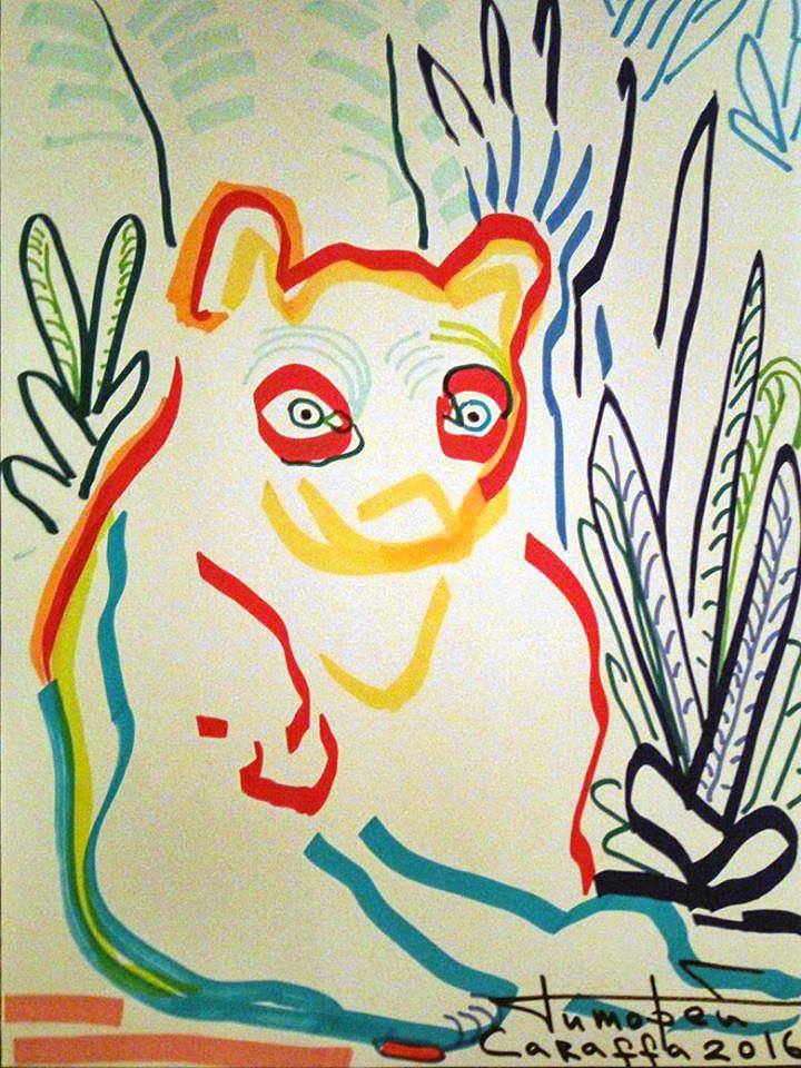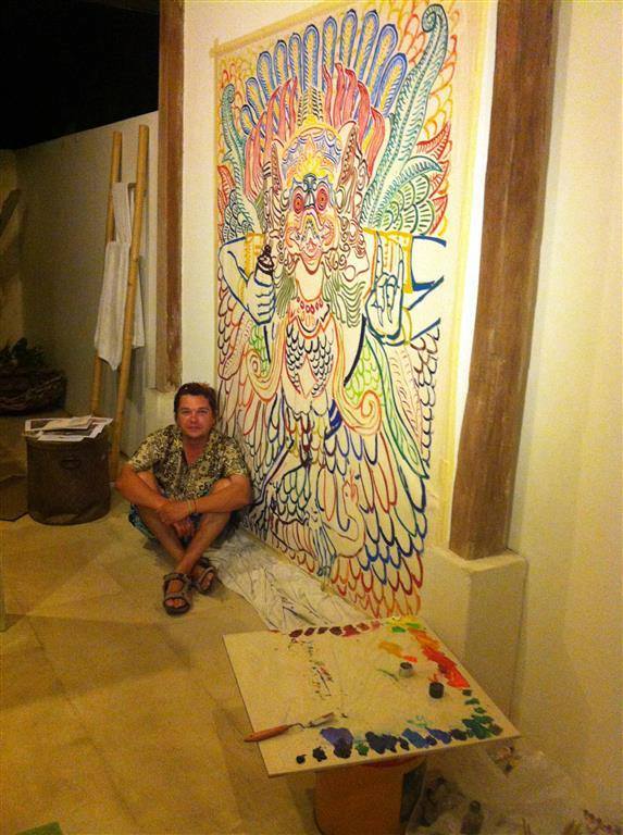 Проект "Жители Леса" создавался на протяжении нескольких лет в Москве и на о. Бали (Индонезия). В проект входят крупномасштабные холсты, масло (2 х 3 м), изображающие различных представителей флоры и фауны планеты, иногда в сильном увеличении, при этом использованная техника - ARTLESS, берущая свои истоки как в наскальных рисунках каменного века с одной стороны, так и в детских рисунках фломастером, с другой стороны, что в свою очередь приводит к подчеркиванию "несоответственности" формата к привычному контексту социальнобытовых условий жизни, превращая при этом "детский" дискурс в сакральный поиск первичных архетипов и самоидентификации первых людей каменного века на заре человеческой цивилизации. И второй частью проекта являются авторские видео снятые преимущественно в удаленных деревнях о. Бали, на которых показана жизнь балийцев среди джунглей, практически без цивилизации, в гармонии с природой, при этом у всех есть телевидение и интернет... видео показываются на небольших экранах (возможно ноутбуках), чтобы с одной стороны сохранить ощущение "полевой" съемки, с другой показать то ощущение от масштабов природы и гармоничного в ней места человека, которое возникает у "зрителя-туриста" при взгляде на тот девственный мир. У "жителей леса" на сам Лес как таковой. Проект призван обратить внимание на серьезнейшие проблемы возникшие в экологии Духа современного цивилизованного человека, попавшего в кризис понятий и смыслов спровоцированный культурой и философией постмодернизма и показывает пути выхода из оного кризиса через современное искусство, как занимающегося самоидентификацией и установлением - возвращением архетипических смыслов.