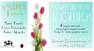 Юмористический литературно-музыкальный вечер "Мартовские Кошки" на Патриарших