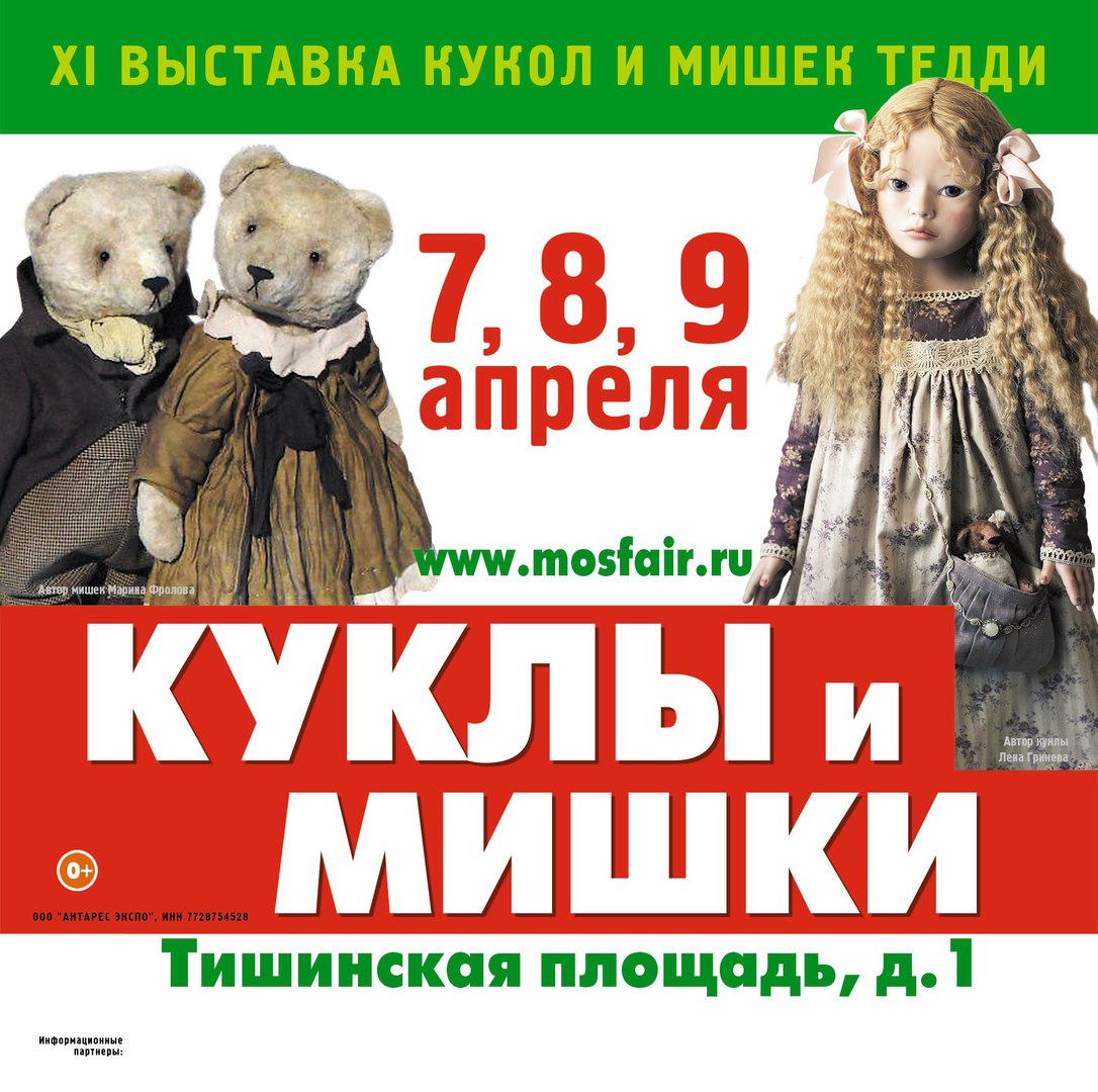 Попасть в сказочный мир кукол и мишек можно с 7 по 9 апреля, в ТВЦ Тишинка. Приходите к куклам и мишкам Тедди всей семьей!