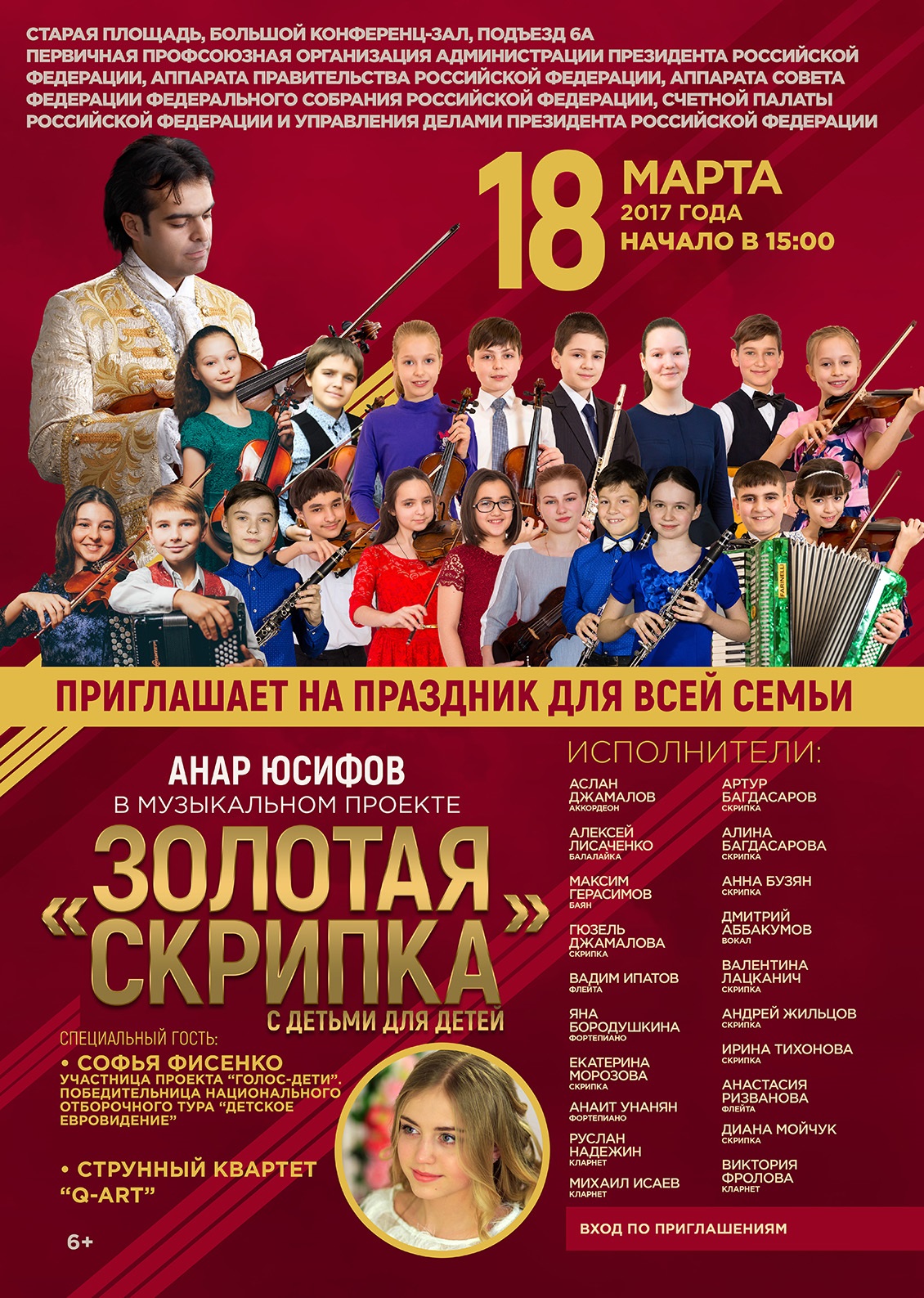 В рамках президентского грант проекта Федеральной национально-культурной автономии азербайджанцев России «Золотая скрипка» с детьми для детей с огромным успехом прошли концерты в 4-х городах Калужской области, гор. Королёве и Московском международном Доме музыки, в которых приняли участие около 50-ти юных музыкантов. И на этой престижной столичной площадке сегодняшний концерт — это своеобразный итог проекта, главная цель которого поддержка талантливых детей и молодежи, в их дальнейшем профессиональном и творческом развитии, возможность участия в серьезных музыкальных проектах и продвижение их творческого потенциала.