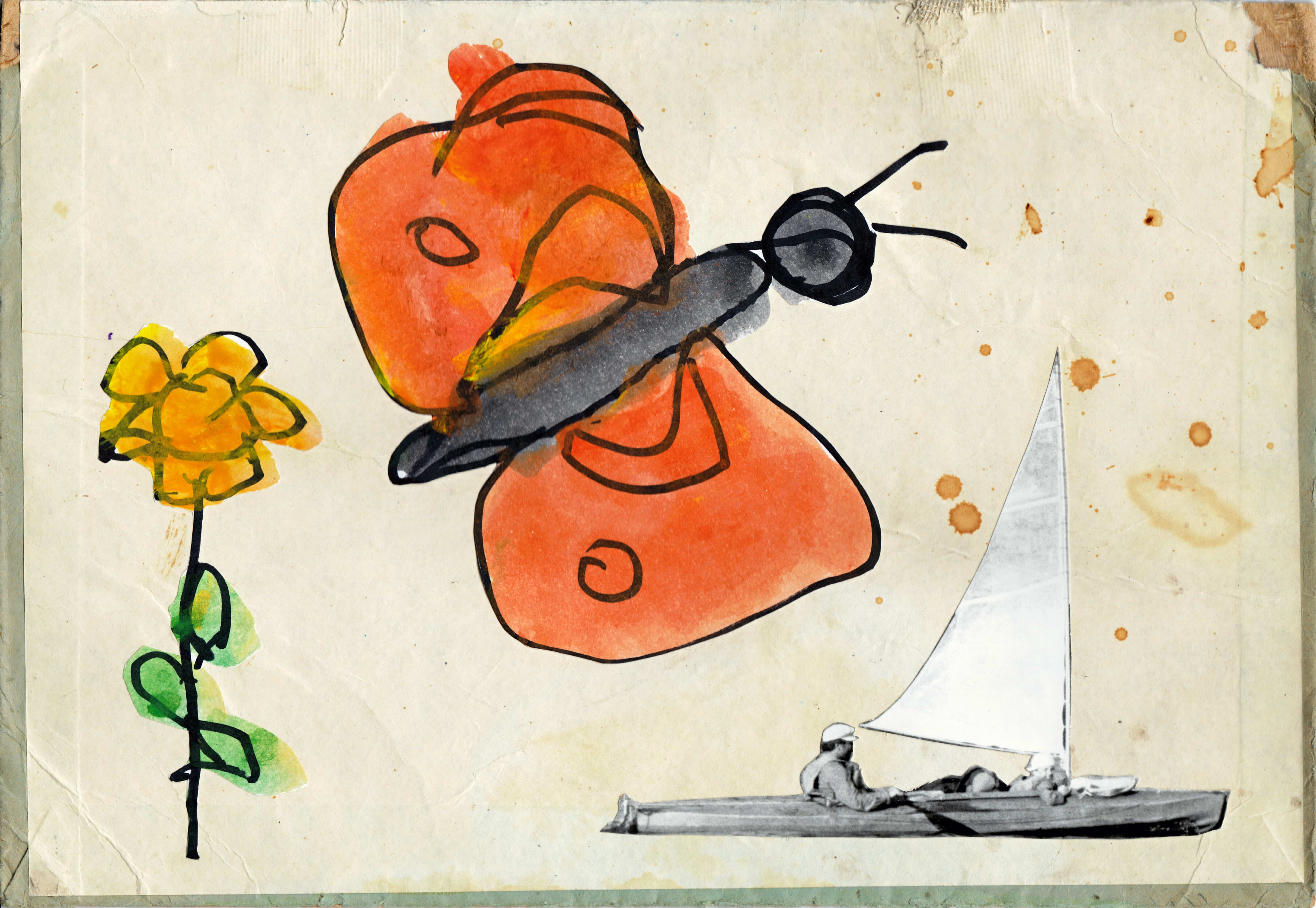 Выставка коллажей склеенных из обрывков старых фотографий, выброшенных детских рисунков и прожитых кем-то жизней.