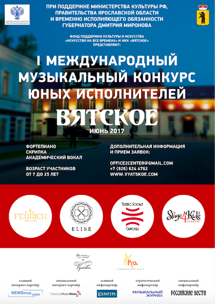 I Международный музыкальный конкурс юных исполнителей «ВЯТСКОЕ» пройдет С 1 по 20 июня в Историко-культурном комплексе «Вятское» (Некрасовский р-н Ярославской обл.)