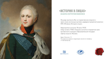 ПРИГЛАШЕНИЕ.pdf Скачать файлПриглашаем Вас на торжественное открытие и пресс-показ экспозиции выставки шедевров портретной живописи XVIII - XIX веков "История в лицах", которые ранее не были представлены широкой публике.