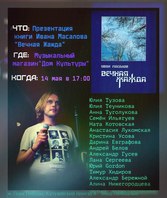 14 мая в 17:00 в культовом музыкальном магазине «Дом Культуры» состоится презентация дебютной книги московского поэта и музыканта Ивана Масалова «Вечная Жажда». Выступят друзья Ивана - известные поэты и музыканты московского андеграунда, которые будут читать его стихи, а также поделятся своим творчеством. Среди участников мероприятия – Юлия Тузова (группа «Порт Июля»), Юлия Теуникова (группа «Теуникова & КоМПОзит», Андрей Белов (группа «Части Целого»), Юрий Gordon, Ната Котовская, Анастасия Лукомская, Александр Гусев, Тимур Хидиров и многие другие.