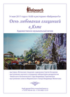 Художественно-музыкальный вечер «День любования глицинией в Ялте» начнется презентацией картин Сергея Бочарова, который уже много лет черпает вдохновение в цветущей глицинии. Историю 90-летнего распространения азиатской лианы на Южном берегу Крыма поведает научный сотрудник лаборатории дендрологии Никитского ботанического сада Владимир Герасимчук. В завершении вечера – концерт солиста Мариинского театра Владимира Феленчака.