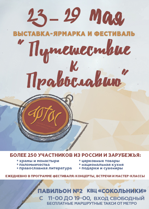 С 23 по 29 мая в «Сокольниках» пройдет VII международный православный фестиваль «Артос». Центральная тема фестиваля — «Путешествие к Православию» объединит около