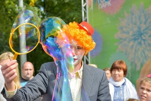 В течение праздника на центральной площадке – шоу больших мыльных пузырей и ходулисты.