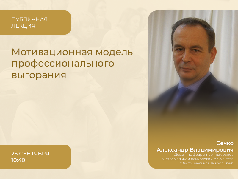 Спикер: Сечко Александр Владимирович – доцент кафедры научных основ экстремальной психологии факультета «Экстремальная психология» МГППУ, кандидат психологических наук.