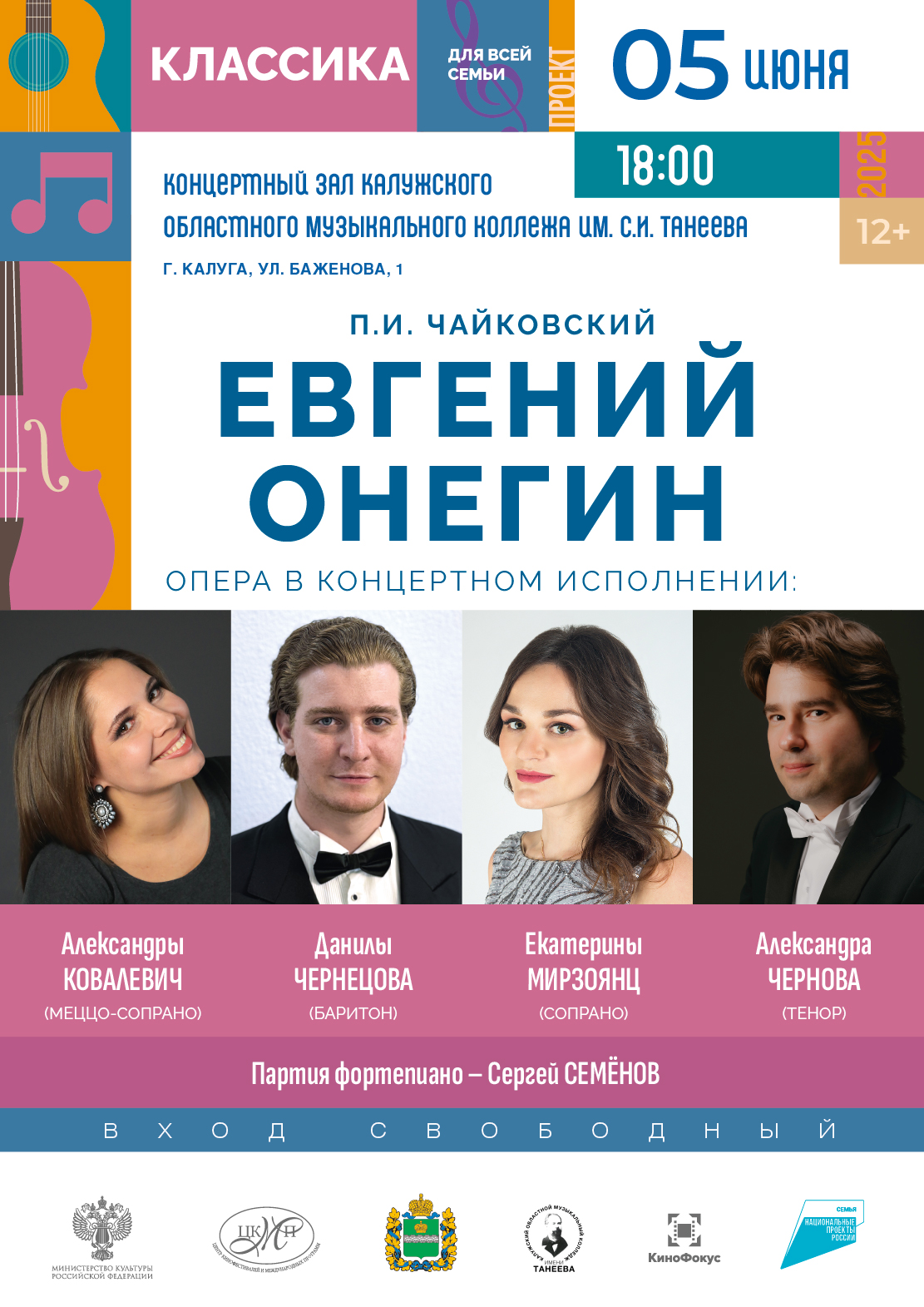 На той же площадке 5 июня 2025 г. в 18:00 будет представлена опера П.И. Чайковского «Евгений Онегин» в концертном исполнении оперных певцов московских музыкальных театров.