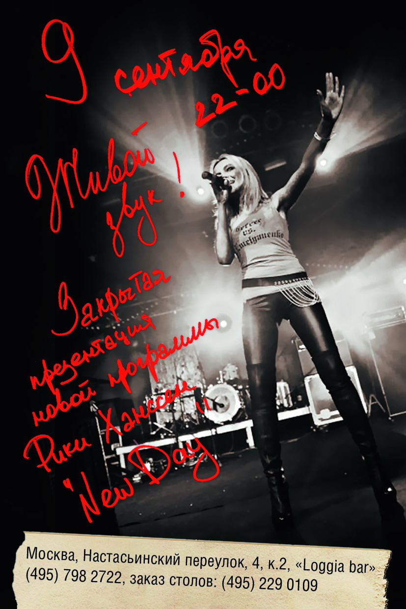 Красота Рики, уникальный вокал и потрясающая энергетика, которую эта артистка выплескивает на сцене, обещают воплотиться в потрясающее шоу. В программе вечера состоится премьера двух кавер-версий на мировые хиты: Jefferson Airplain "Somebody to Love" и Nirvana "Smells like teen spirit"