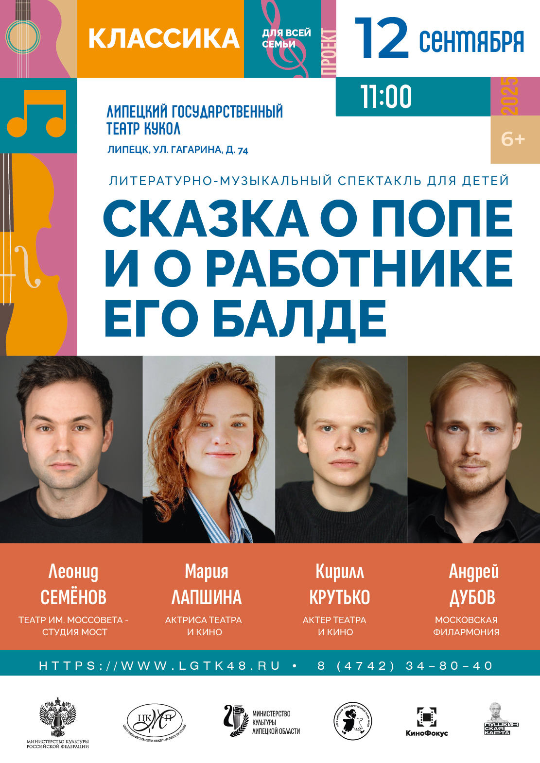 Программа мероприятий откроется 10 сентября в 19:00 в концертном зале «Унион» Липецкой государственной филармонии музыкальным вечером «Женские образы у П.И. Чайковского». 11 сентября в 19:00 там же в рамках ретро салона «Золотая классика» состоится премьера музыкально-поэтического спектакля «Есенин. Триптих», посвященного жизни и творчеству Сергея Есенина в год 130-летия поэта. 12 сентября в 11:00 в Липецком государственном театре кукол состоится музыкально-интерактивное представление для детей и взрослых «Сказка о Попе и о работнике его Балде».