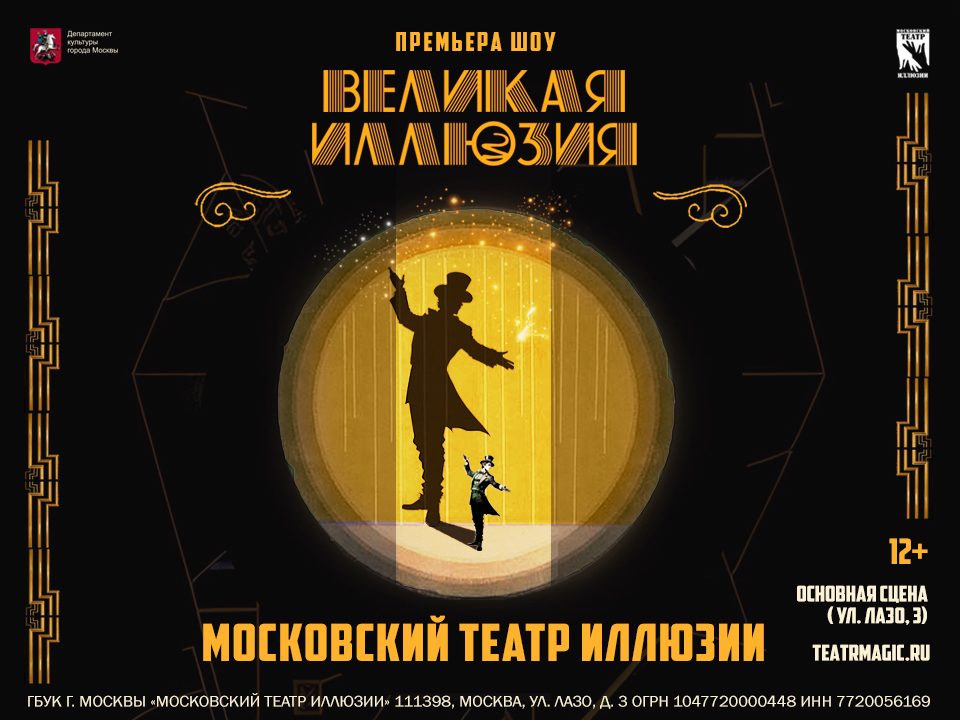 пресс-релиз_Вел.иллюзия.docx Скачать файлМосковский театр иллюзии перенесет зрителей в эпоху ар-деко, представив премьеру грандиозного шоу «Великая иллюзия» от самого загадочного иллюзиониста России – Ингвара.