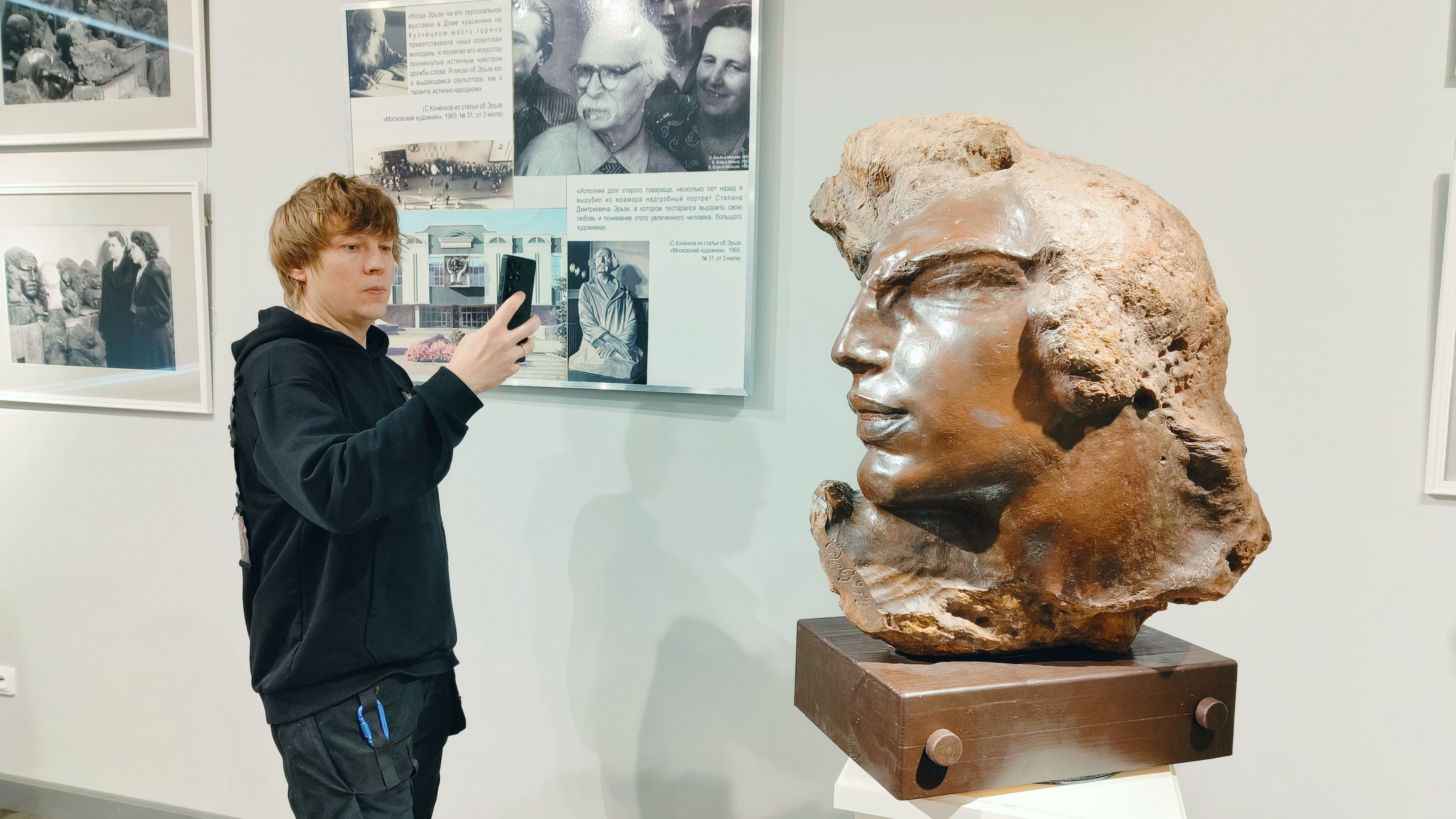 «О творчестве Степана Эрьзи я слышал, но воочию его произведения довелось увидеть впервые благодаря выставочному пространству «Эрьзя-Центра». В юбилейный год скульптора хочется выразить благодарность за его творчество и увековечить не только в физическом, но и в цифровом пространстве. Я посмотрел произведения, прикоснулся к удивительному материалу кебрачо и теперь готов переосмыслить образ мастера», — отметил Попов.